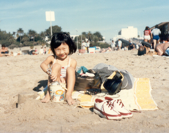 Me in my beach gear. (Now you gotta give it up... I was pretty damn cute back then.) For our first year in America, my mom and I spent a good deal of time at the Santa Monica Beach. I even remember what 3rd Street was like before it became cool. I must've gotten tired of it because I now hate the beach.