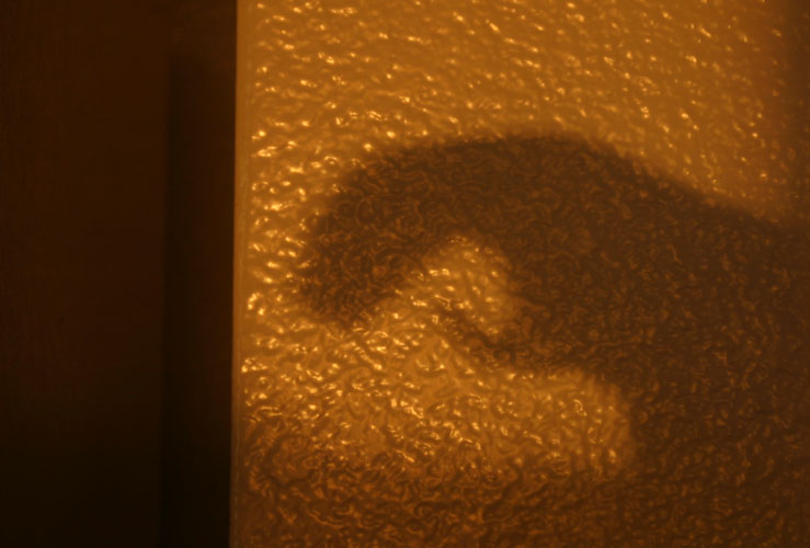 And from out of the depths came the mighty T-Rex! Actually, I found this by accident one night. The lights from the shopping center across the street were shining in and caused my clay dinosaur to cast this shadow on the kitchen wall.